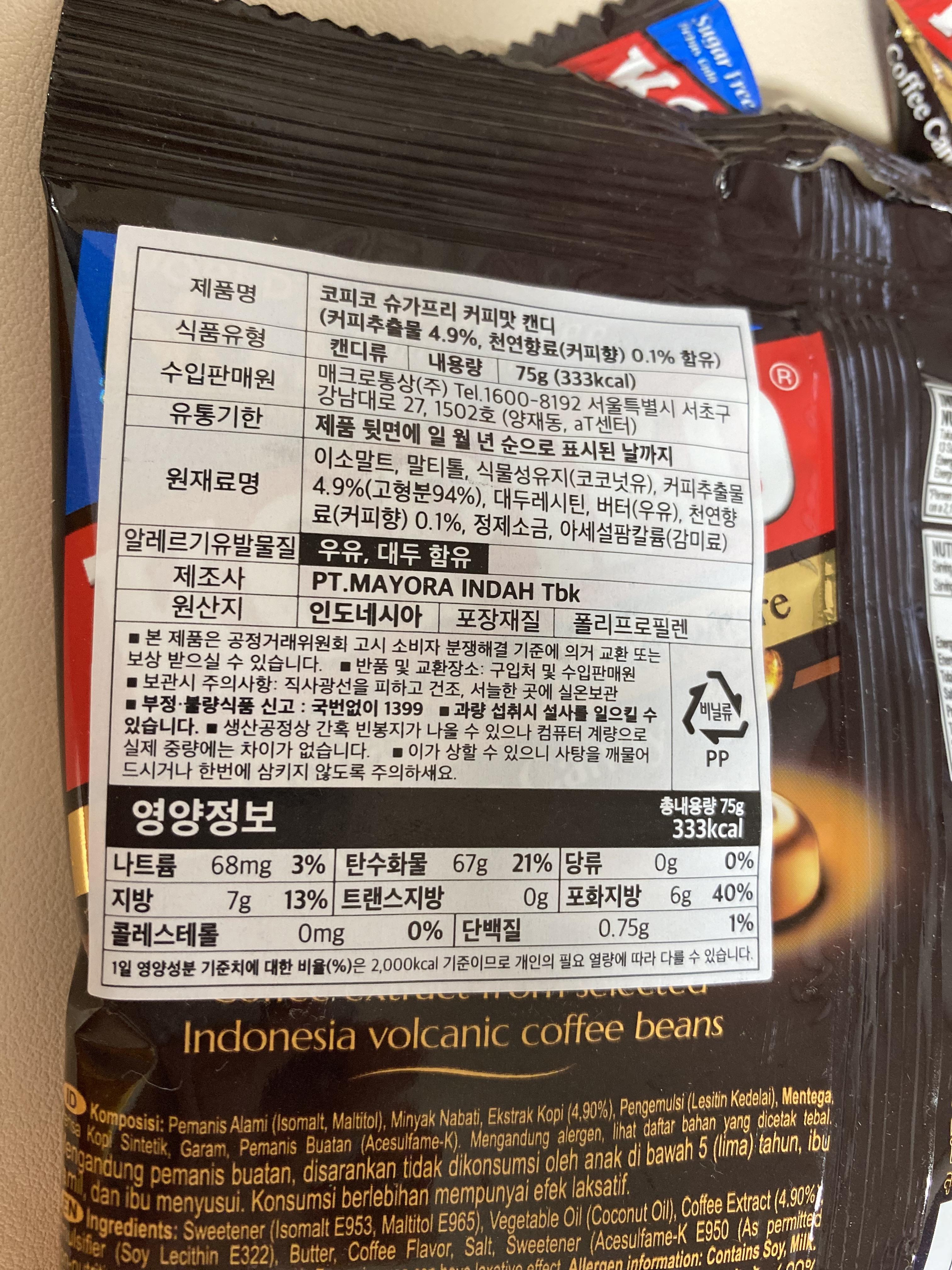 코피코 사탕은 인도네시아에서 수입되고 있으며, 카페인이 들어가 있는 커피맛 사탕입니다.